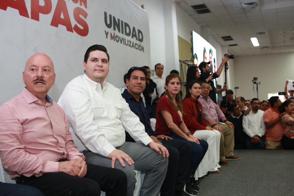 Acompañaron a Eduardo Ramírez, el dirigente estatal del Movimiento de Regeneración Nacional (Morena) en Chiapas, Carlos Molina; la presidenta municipal de Tapachula, Rosa Irene Urbina; la diputada Flor Esponda; el presidente de la Junta de Coordinación Política (Jucopo) del Congreso del estado, Yamil Melgar; el consejero estatal de Morena, José Manuel Cruz; Roberto Albores y el empresario chiapaneco Jesús Domínguez.
