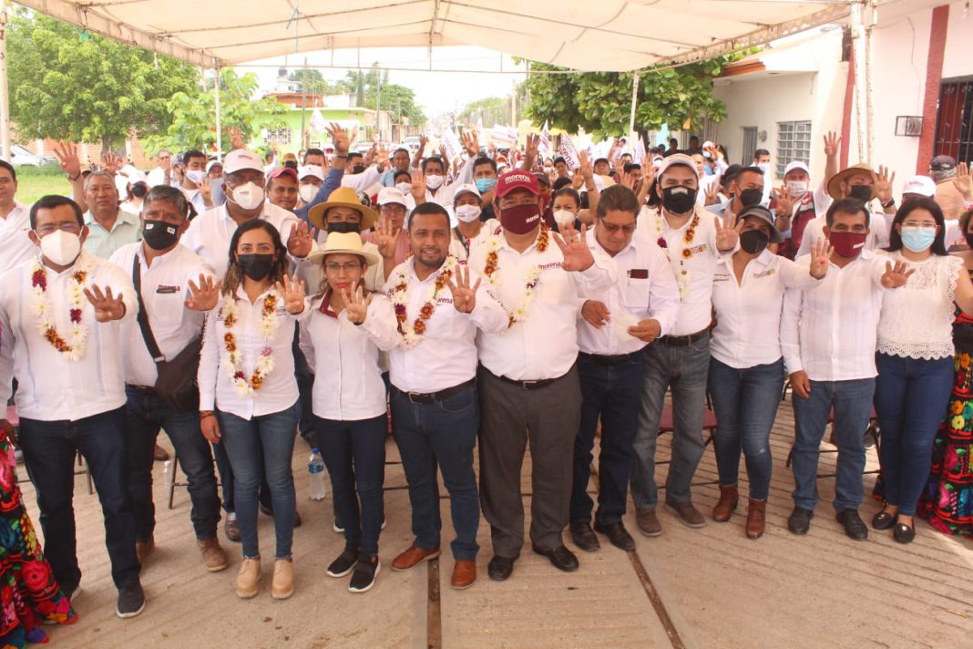 CINTALAPA, CHIAPAS. – Ernesto Cruz Díaz, candidato a presidente municipal de Cintalapa, Juan Pablo Montes De Oca, candidato de la Coalición “Juntos Hacemos Historia” y Lina Nango Molina, candidata de la Coalición “Juntos Haremos Historia en Chiapas”, realizaron una caminata por las calles del centro de la ciudad como muestra de apoyo a Neto Cruz Díaz.