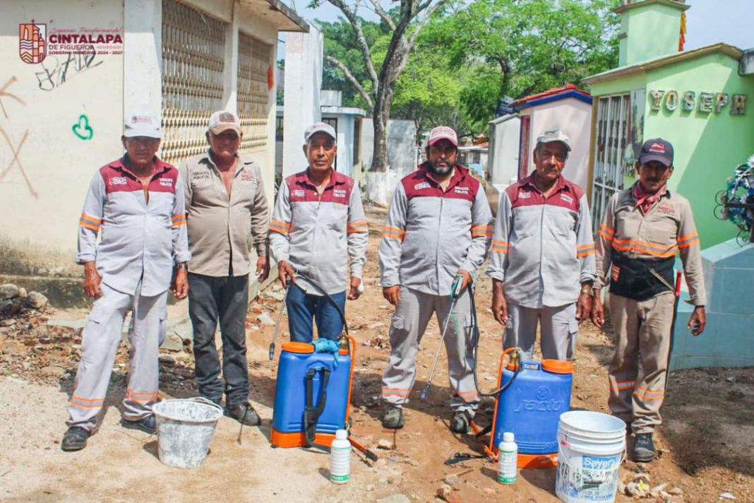 Con cuadrillas de trabajo hicimos la fumigación con herbicida en todo el interior del campo santo, esto evitará el crecimiento de la maleza y el anidamiento de animales que representen un riesgo para las personas que acuden a dejar flores.