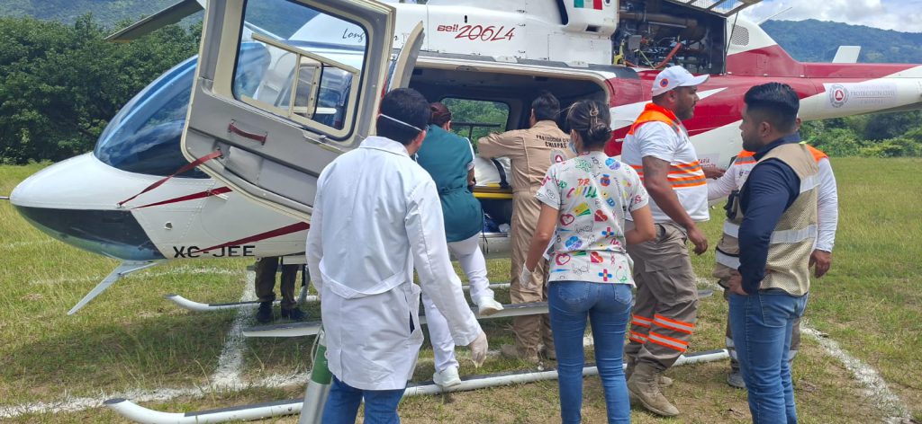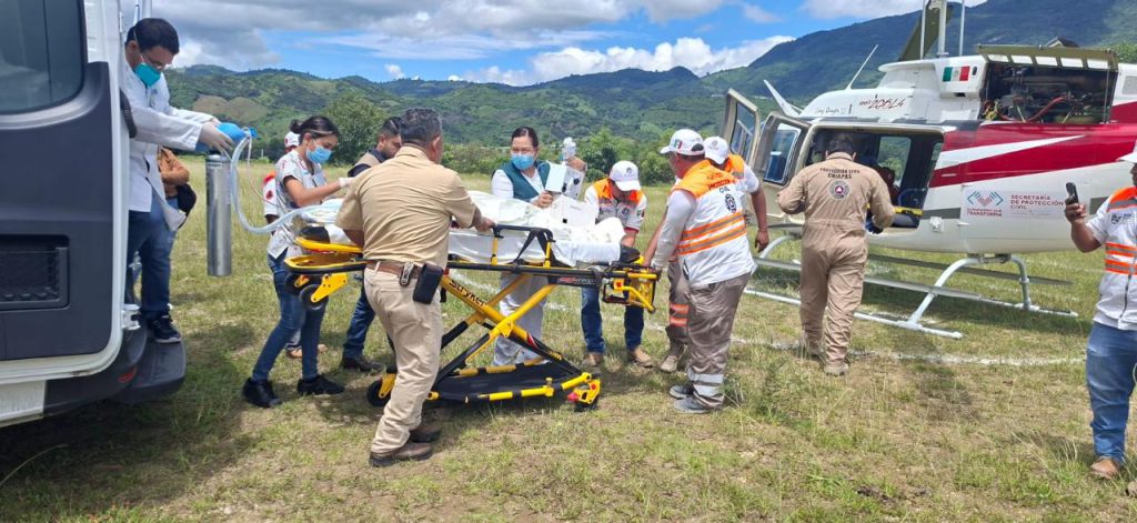 🚁 La Secretaría de #ProtecciónCivil, a través de la Dirección de Rescate Aéreo, en coordinación con el sector salud, activó un traslado aeromédico secundario en apoyo al Hospital Rural IMSS Bienestar de Bochil.