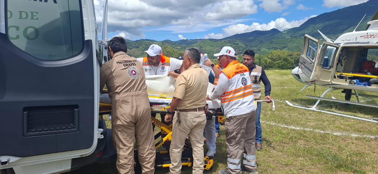 🚁 La Secretaría de #ProtecciónCivil, a través de la Dirección de Rescate Aéreo, en coordinación con el sector salud, activó un traslado aeromédico secundario en apoyo al Hospital Rural IMSS Bienestar de Bochil.
