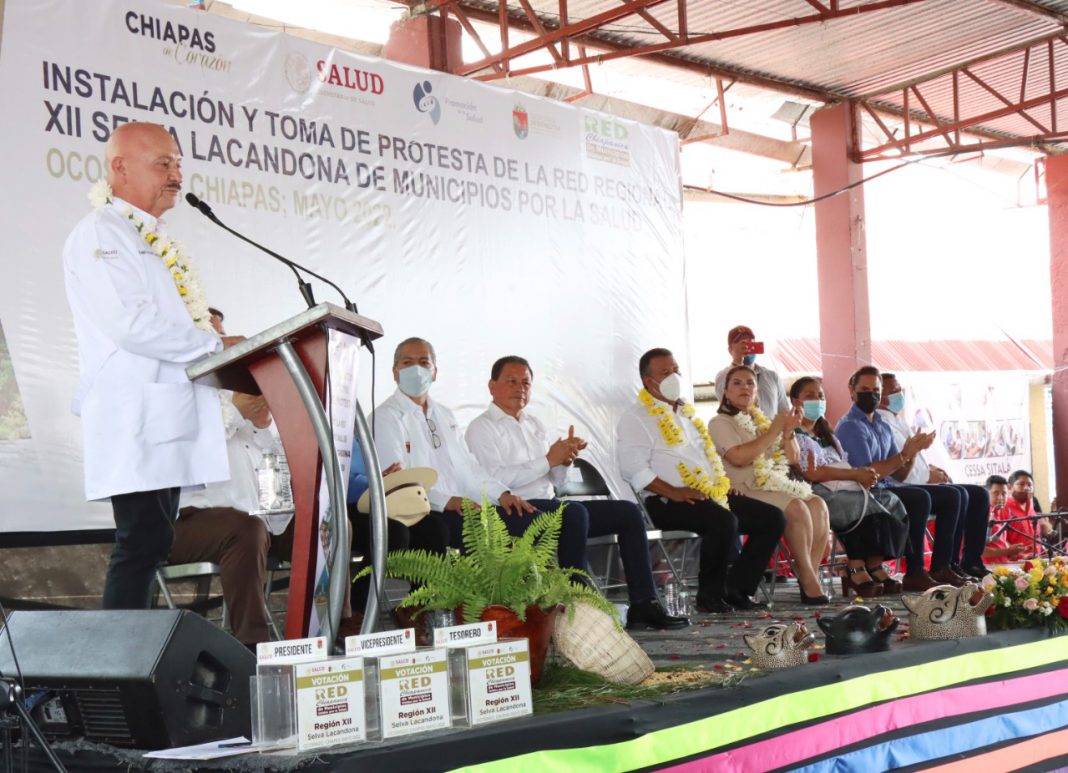 Ocosingo, Chiapas; 19 de mayo del 2022.- Trabajar en armonía social de la mano de los ayuntamientos de la región Selva-Lacandona para garantizar que el personal médico y de enfermería brinde los servicios a las comunidades más apartadas, así como mantener el abasto de medicamentos en las unidades, es un firme compromiso del gobierno de estatal y la Secretaría de Salud, afirmó el doctor Pepe Cruz al tomar protesta a la Red Regional XII Selva Lacandona de Municipios por la Salud.
