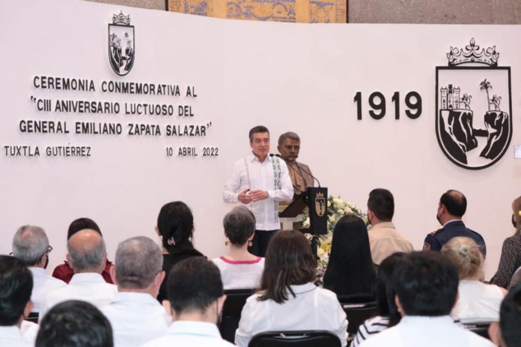 En la conmemoración del 103 Aniversario Luctuoso de Emiliano Zapata, el gobernador Rutilio Escandón Cadenas expresó que este día es marcado por la historia debido al asesinato de un mexicano que dejó huellas imborrables al ser un verdadero luchador social, imbatible por la búsqueda del bien común y atender a los olvidados, a los pueblos indígenas, campesinos y obreros.