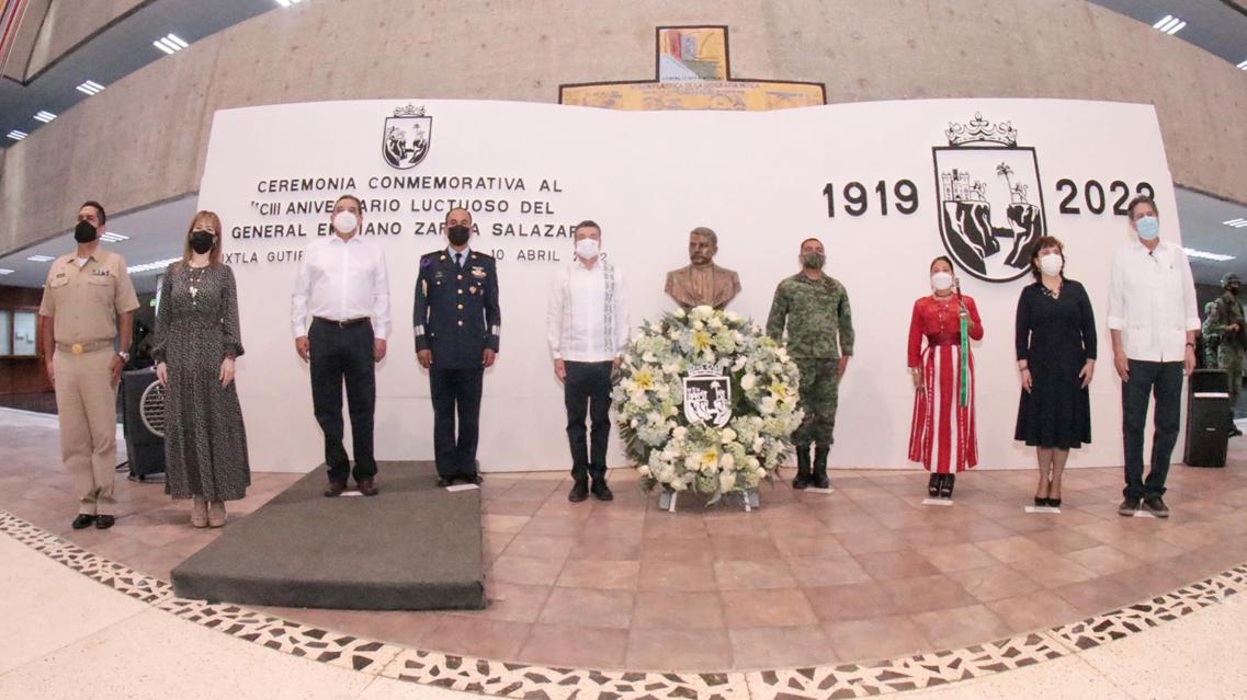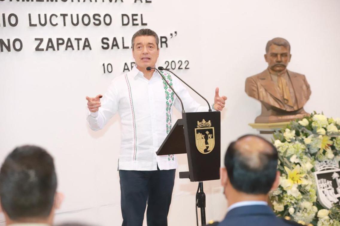 En la conmemoración del 103 Aniversario Luctuoso de Emiliano Zapata, el gobernador Rutilio Escandón Cadenas expresó que este día es marcado por la historia debido al asesinato de un mexicano que dejó huellas imborrables al ser un verdadero luchador social, imbatible por la búsqueda del bien común y atender a los olvidados, a los pueblos indígenas, campesinos y obreros.